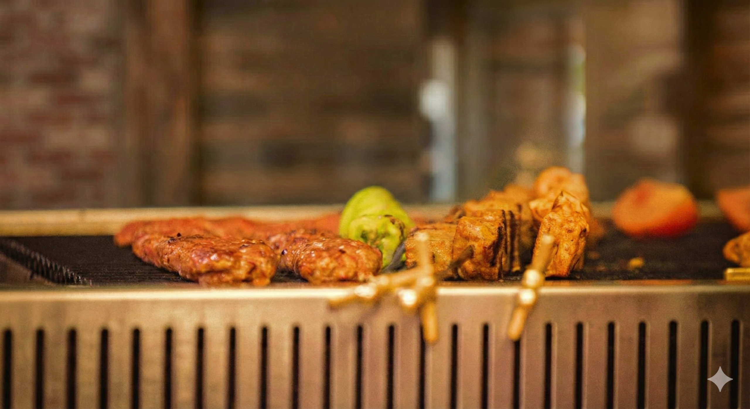 Das Herzstück: Ali arrangiert die saftigen, frisch grillierten Lammfleischstücke. Direkt vom Grill, zart und voller Aroma.